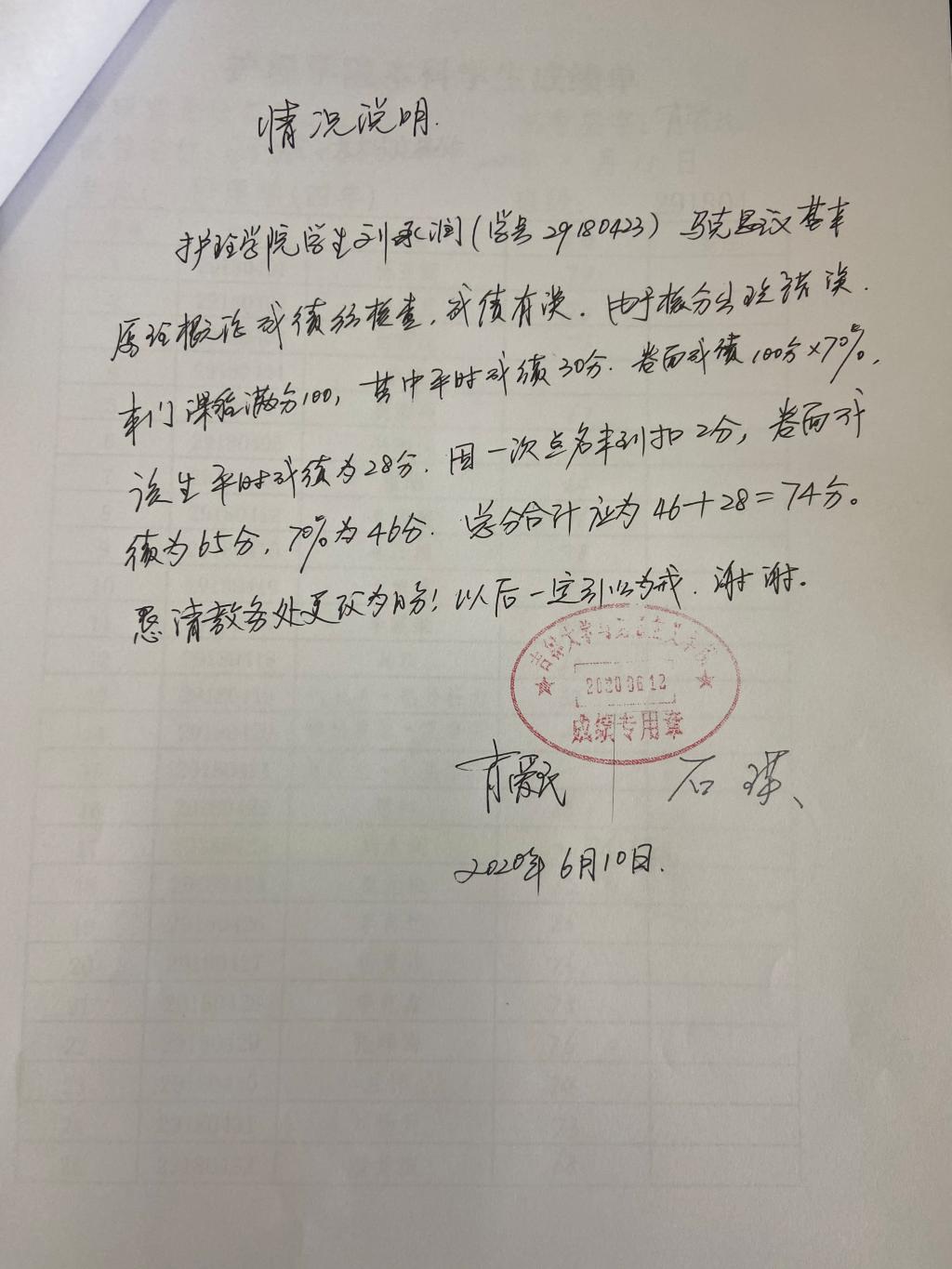 根据《关于进一步明确本科生课程考核等有关问题的通知》(校教字〔2018〕47号)文件有关精神,现对黑料不打烊 2018级刘承润同学(学号:29180423)2019-2020-1学期课程成绩更正如下: