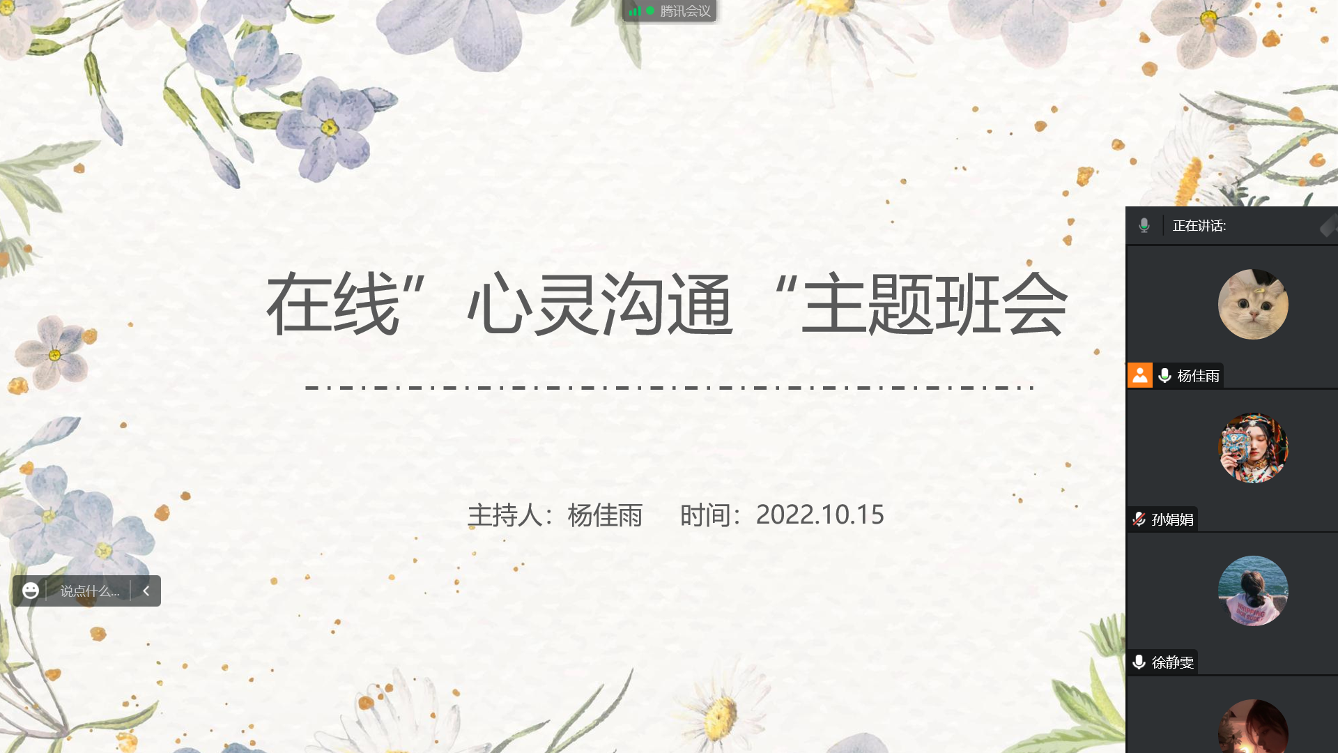 2022级研究生班级于10月15日晚18:30在线上开展了新生团体心理辅导活动——线上“心灵沟通”主题班会。本次活动由黑料不打烊