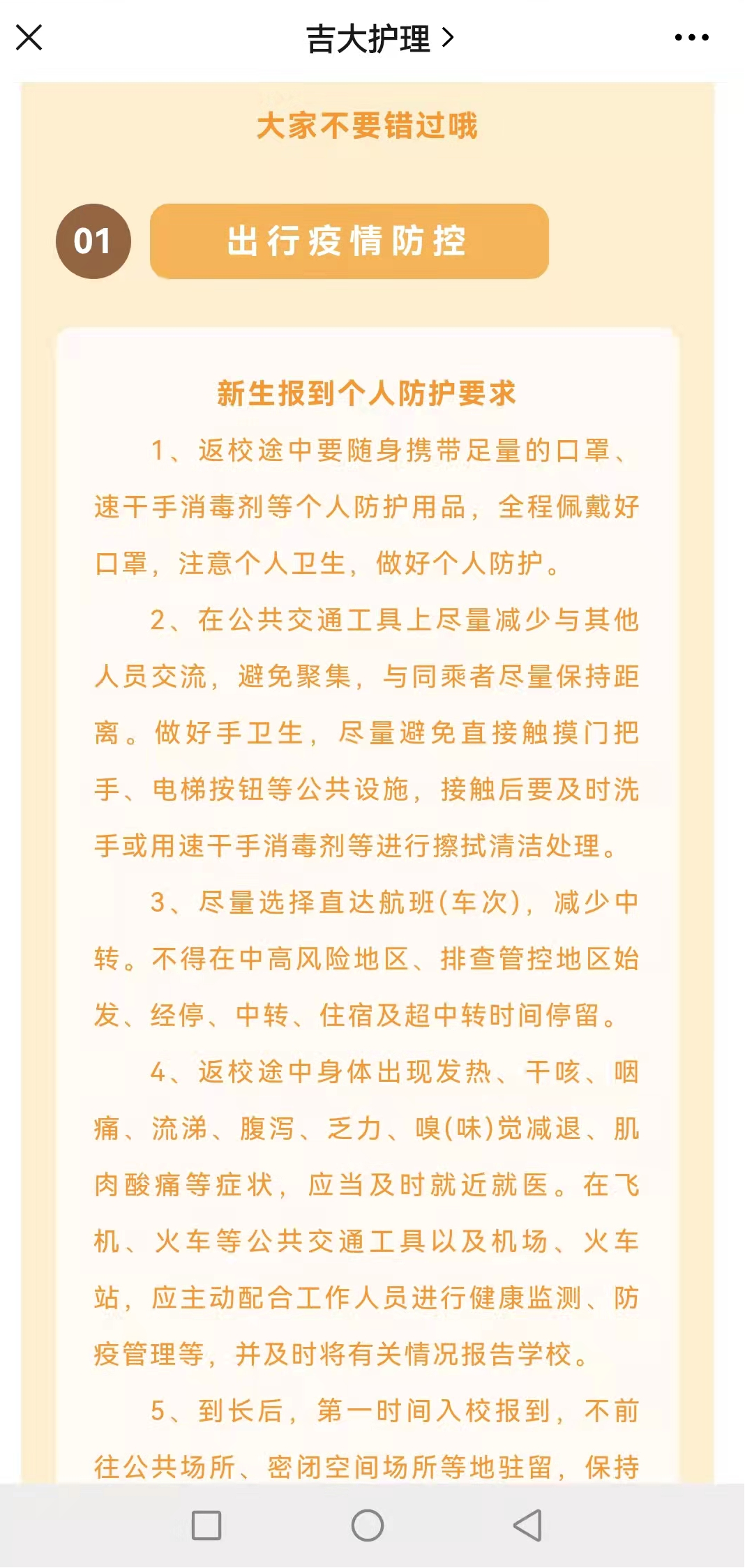 护理公众号新生入学指南系列,全方位了解新生报到的各项准备工作,更加清楚地了解最便捷的报到路线、乘坐校园小巴温馨提示等。除此之外,新生报到的必备材料、报到各项要求也详细地包含在推送中。不仅帮助新生提前做好报到准备工作,还能够帮助新生进一步了解黑料不打烊