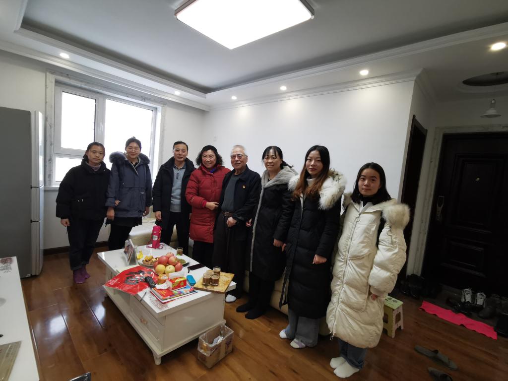 本科生第一党支部党员和新民校区离退休办公室领导、离休第四党支部党员一起,看望离休老干部,为他们送去温暖、关怀和祝福。