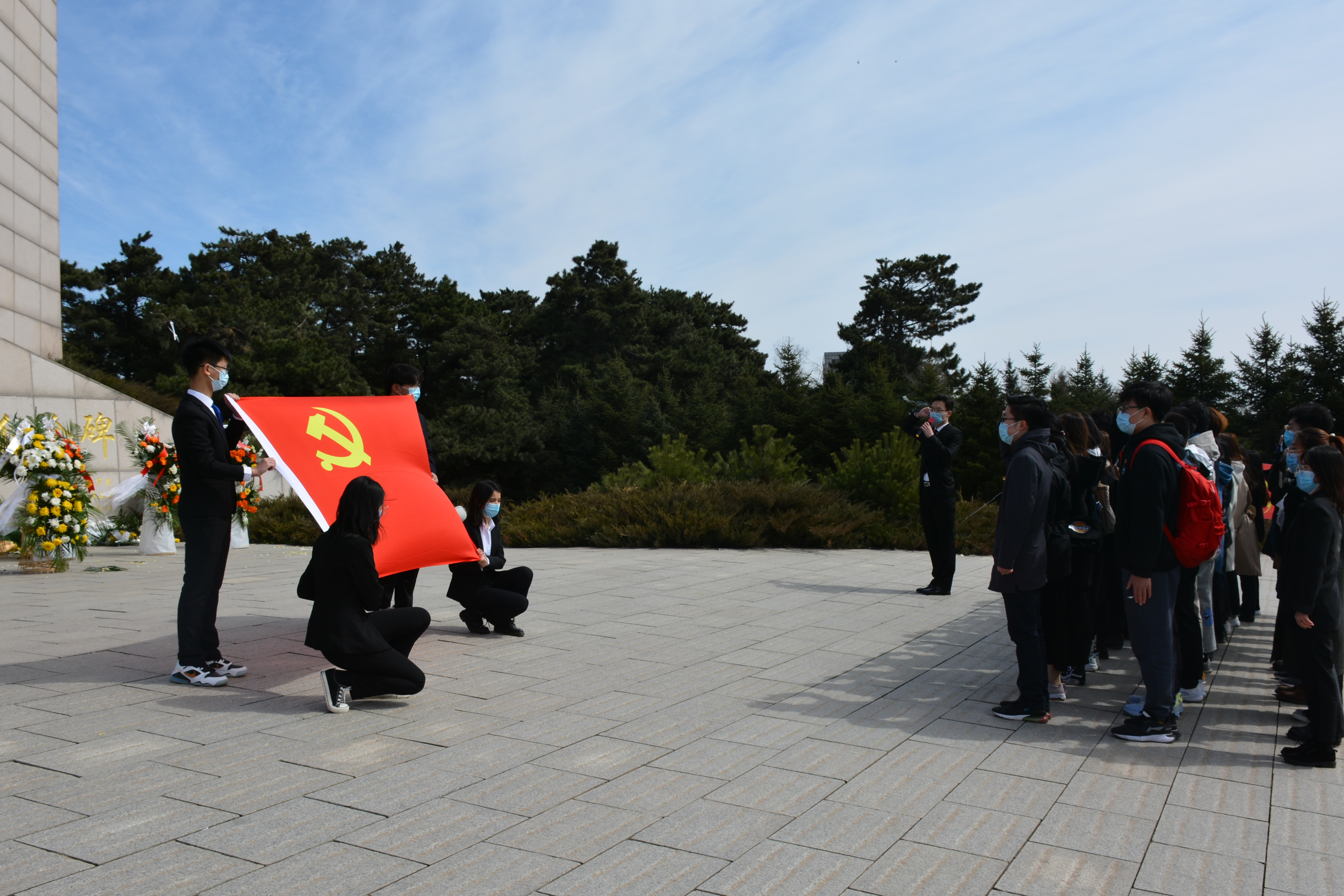 部分学生党员、入党积极分子、共青团员,在长春市烈士陵园开展了以“折菊遥寄,丰碑长存”为主题的祭扫活动,祭奠长眠于此的革命烈士。同学们在烈士陵园纪念馆内参观重温了烈士事迹,礼敬先烈前辈。参观完毕后,大家在陵园的纪念碑前向烈士默哀,表达自己的敬意并依次上前为烈士献花。随后,全体党员集体重温入党誓词。