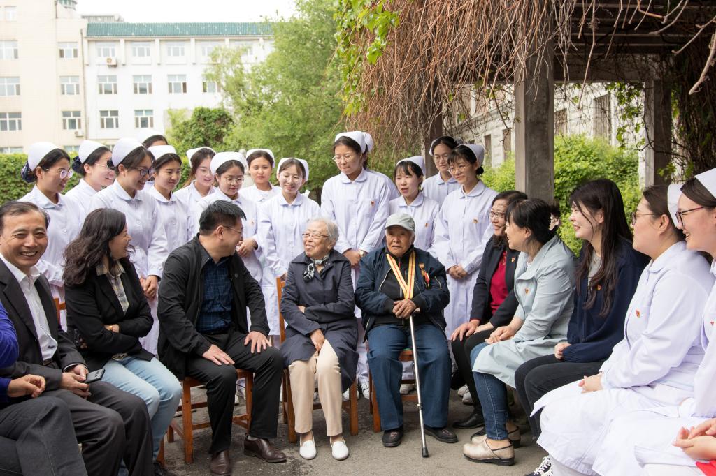 本科生第一党支部党员和新民校区离退休办公室领导、离休第四党支部党员一起,看望离休老干部,为他们送去温暖、关怀和祝福。