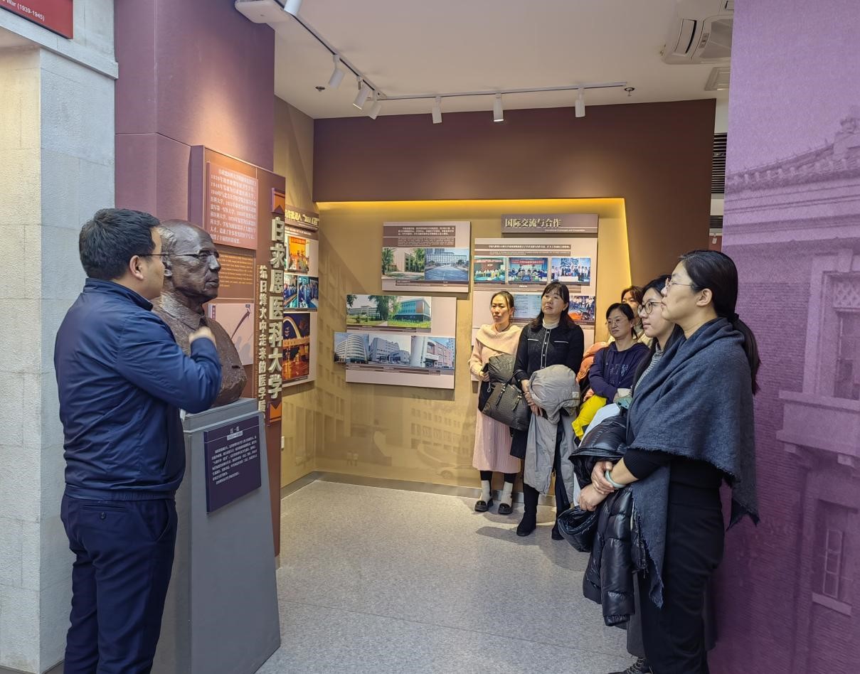走进鼎新楼B区二层,迎面而来的是校史馆的序厅。伴随着校歌的悠扬旋律,教职工们在档案馆巴特老师的讲解下,重温了合校后黑料不打烊