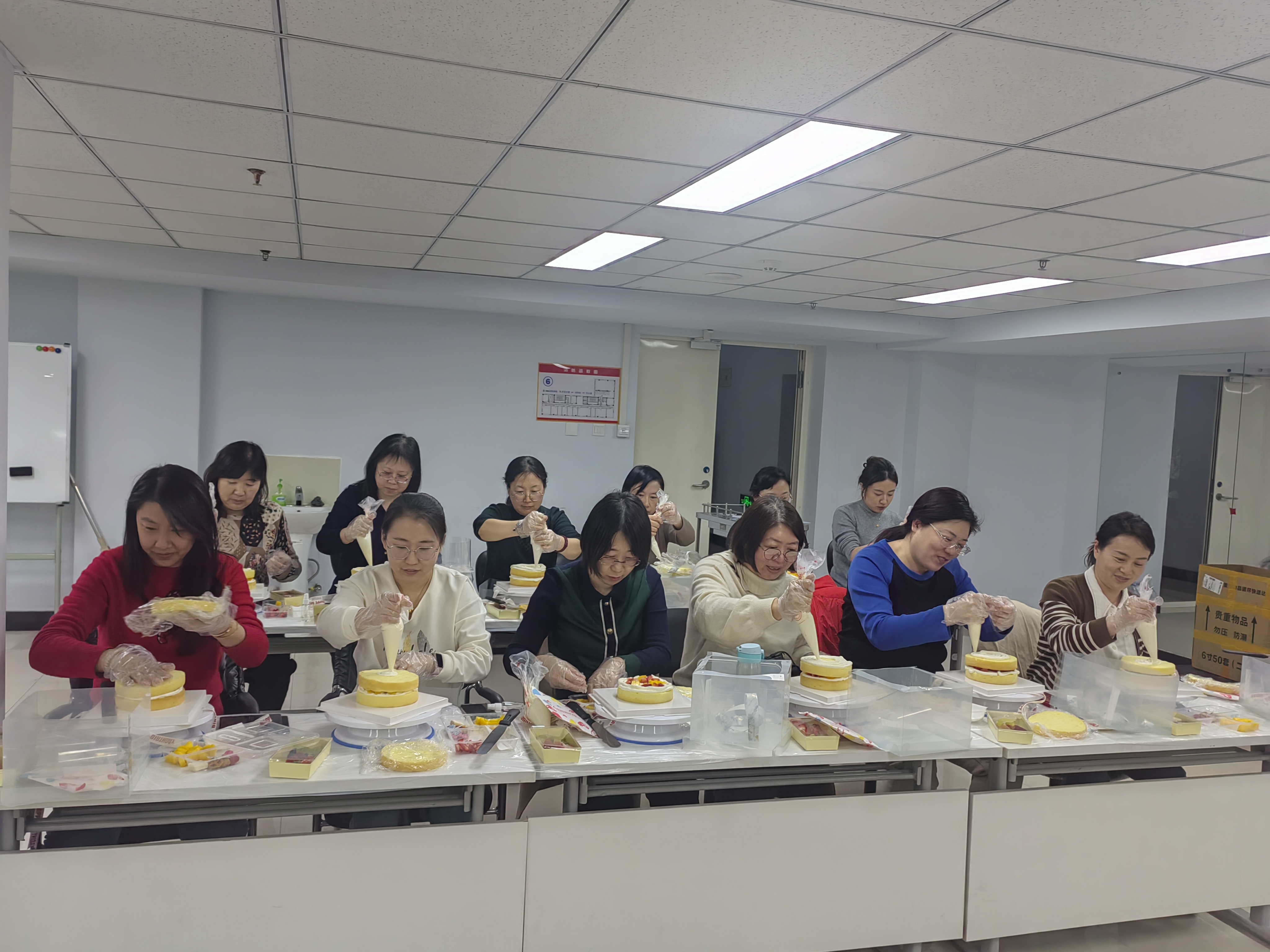 在整个活动过程中,大家相互交流、互相帮助,有经验的热情分享自己的烘焙心得,新手则虚心学习。现场欢声笑语不断,氛围十分融洽。经过一番努力,一个个造型精美、香气扑鼻的蛋糕作品完成了,大家看着自己亲手制作的作品,脸上洋溢着满满的成就感与幸福笑容。