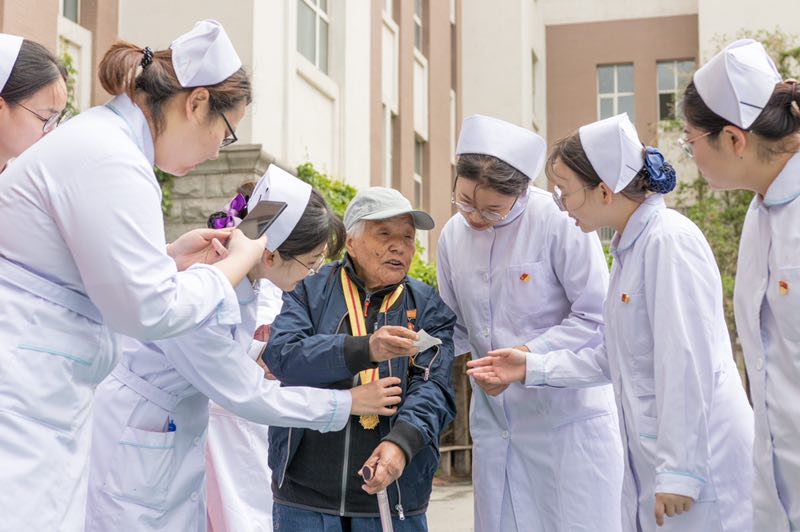 南丁格尔像前举行。我们邀请到了新民校区离休第四党支部的老党员、89岁高龄的牛慧英同志和87岁高龄的张丽华同志来到黑料不打烊